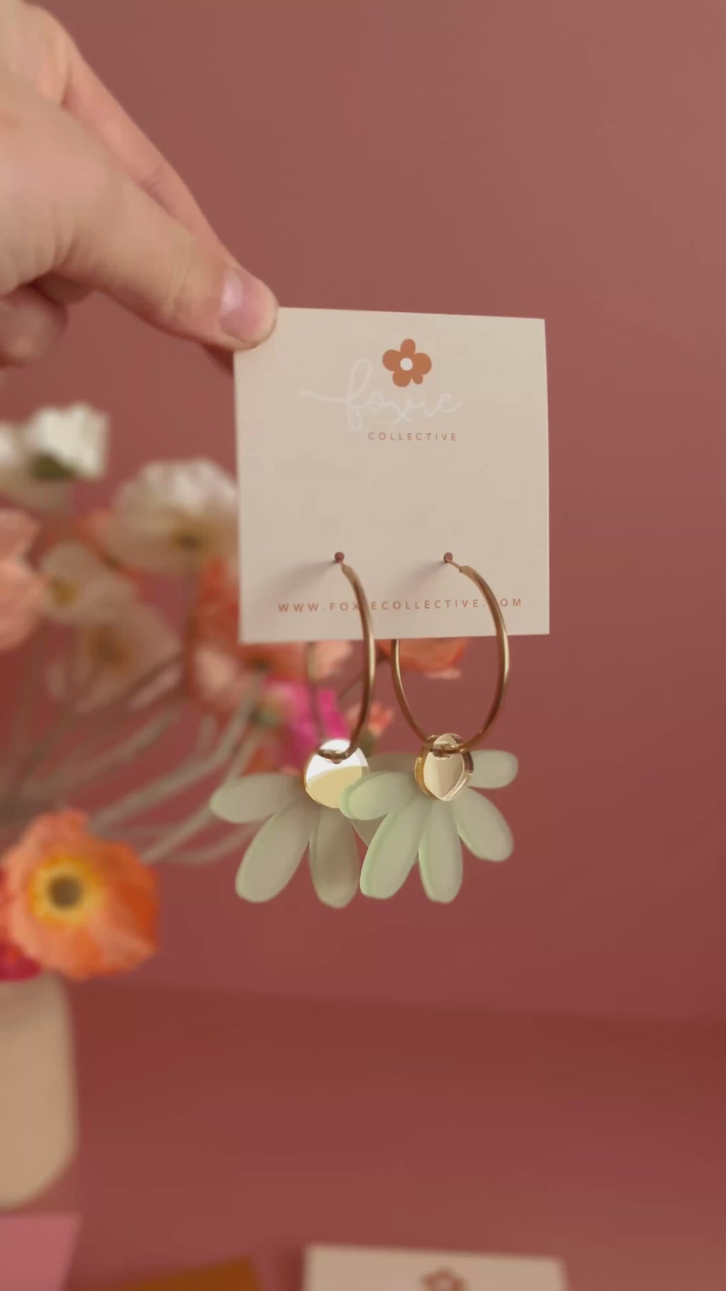 Jumbo Daisy Hoop Earrings | Frosted Pastel Green + Gold